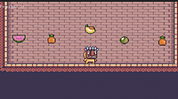 Players can collect items to progress to the next level. These items are fruits which are scattered around the map. When Player touches an item it will disappear and the Fruit counter number will go u...